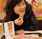 A woman takes advantage of the promotion at McDonald's in Beijing yesterday. [China Daily]