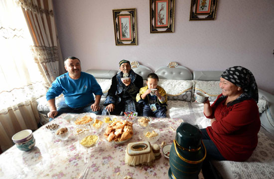 Hagihan, 75, lives with his son Yeerkin in a residential area in Altay, Xinjiang Uygur autonomous region. After he quit farming, Yeerkin became a driver and paid about 40,000 yuan to move into an 90-squre-meter apartment.