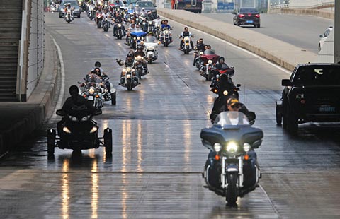 Two hundred enthusiastic motorcyclists drove luxury superbikes to enjoy the city's splendor at the Binhai New Area in Tianjin on Saturday. The trip, about 70 kilometers, saw participants from Beijing, Tianjin and Liaoning province drive world-class superbike brands, including Harley-Davidson, BMW and Bombardie, that carry a price tag ranging from 200,000 to 750,000 yuan ($32,000 to 120,000).