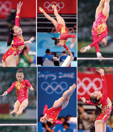At the women's team finals at the National Indoor Stadium, six young Chinese gymnasts won the clash with reigning world champion the US to clinch gold with a score of 188.900 points.