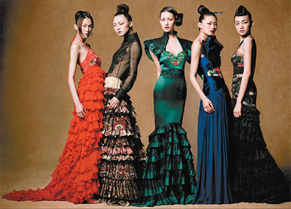 China's promising young designers, He Jian, Zhu Xiaoyu and Yang Jie - all of whom are winners of the latest Seven Brand Cup China Style Costume Creation Contest - will debut at this premier fashion event that brings together the most cutting-edge designs and collections in Europe. "We think Chinese designers can win international recognition by incorporating unique Chinese elements into world fashion trends," says He Jian. His collection features innovative combinations of ethnic costumes and modern men's casuals, while Zhu Xiaoyu and Yang Jie both derive inspiration from the costumes of the Miao and Zhuang minorities. Today's youngsters have been inspired by the success of other Chinese designers who have starred previously in such fashion capitals as Milan, New York and London. Zhang Zhifeng, art director of NE Tiger Clothing Company, is one such example. The veteran designer wants to build NE Tiger as an international luxury brand in China - in the same league as Louis Vitton and Armani. Zhang has explored the use of Chinese Yunjin, the special brocade once reserved for royalty, in his collections. He adopts the traditional "seamless" weaving method in his haute couture fabrics, once used exclusively for the brocade dragon robe of the emperors. Exquisite handmade Chinese embroideries of the phoenix and peony are also widely used. As the making of the brocade and the embroideries are extremely time-consuming and complicated, it usually takes Zhang and his skilled craftsmen months to make one suit, with the price hovering in the region of 50,000 yuan ($6,756). "Yunjin and embroidery mark the high points of Chinese clothing culture. I hope to arouse an awareness and appreciation of these rare gems through my designs," says Zhang. His collections feature a harmonious combination of traditional culture and modern fashion elements. He includes Western fashion inspirations and solid cutting techniques into his designs and applies georgette, damask, Italian baldachin, lace and Swarovski crystals to Chinese silk and brocade to redefine the Western gown, corsage, pleat skirt and fish skirt. |