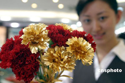 Gold Foil Carnations Appeared in Jinan (CRI) Updated: 2006-05-12 11:45