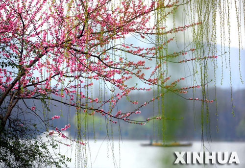 Photo shows a picturesque spring view of the famous West Lake in Hangzhou, Easter China's Zhejiang Province. This year's warm winter contributed largely to the early arrival of peach blossoms. [Photo: Xinhua]