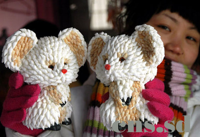 A gift shop in Tancheng County in eastern China's Shandong Province has been having good business selling cute mice couple toys designed for Valentine's Day. The shop owner told the China News Service that the mice couples are made with environmentally friendly materials, such as shells, gesso and ginkgo wood. The cute mice couples are popular among the young people. |