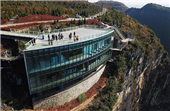The view of a limestone gallery built on a cliff in Anlong county, Southwest China's Guizhou province, has attracted tourists' attention because of its special position.