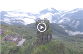 Two Buddhist temples, each more than 500 years old and connected by a natural stone bridge, climb above the two peaks of Fanjingshan in Tongren city, Southwest China's Guizhou province.