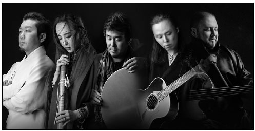 In a spacious room of a five-star hotel in downtown Beijing, people are walking around, watching the streams of cars on Chang'an Avenue flow beneath a warm afternoon sun, and waiting. Suddenly, the sound of a hand drum erupts and the five members of the band Haya appear in the room.