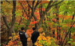 Visitors tour around a scenic spot of Wunu Mountain in Ji'an city, Northeast China's Jilin province, Sept 29, 2015. Autumn scenery there attracts many tourists.