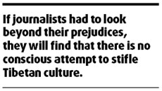 But if journalists had to look beyond their prejudices, they will find that there is no conscious attempt to stifle Tibetan culture.