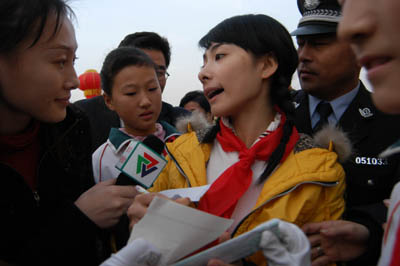 interviewed at the opening ceremony of the Xing Huina Hope Elementary